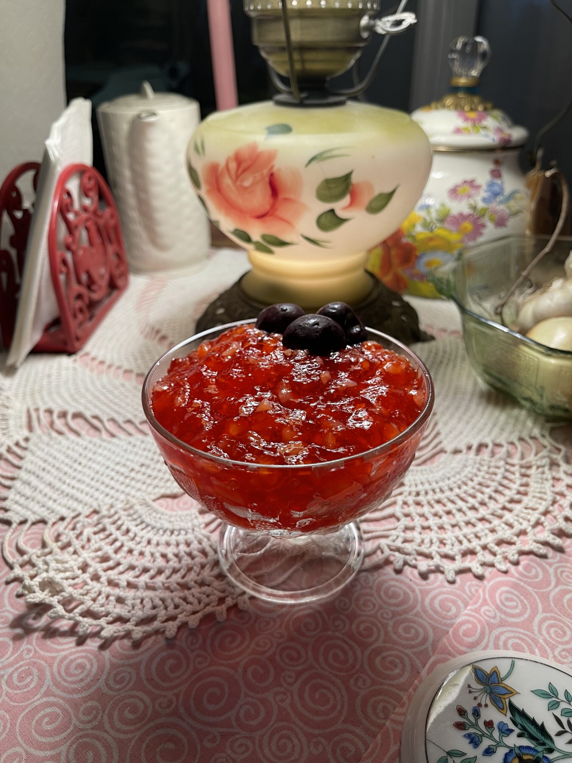 How was the Jell-O? It was okay. I’m glad I used fresh cherries. Would I do it again? Probably not. It was a fun historical experiment and got me thinking about the way people acquired their food during World War II, and what life might have been like for them.